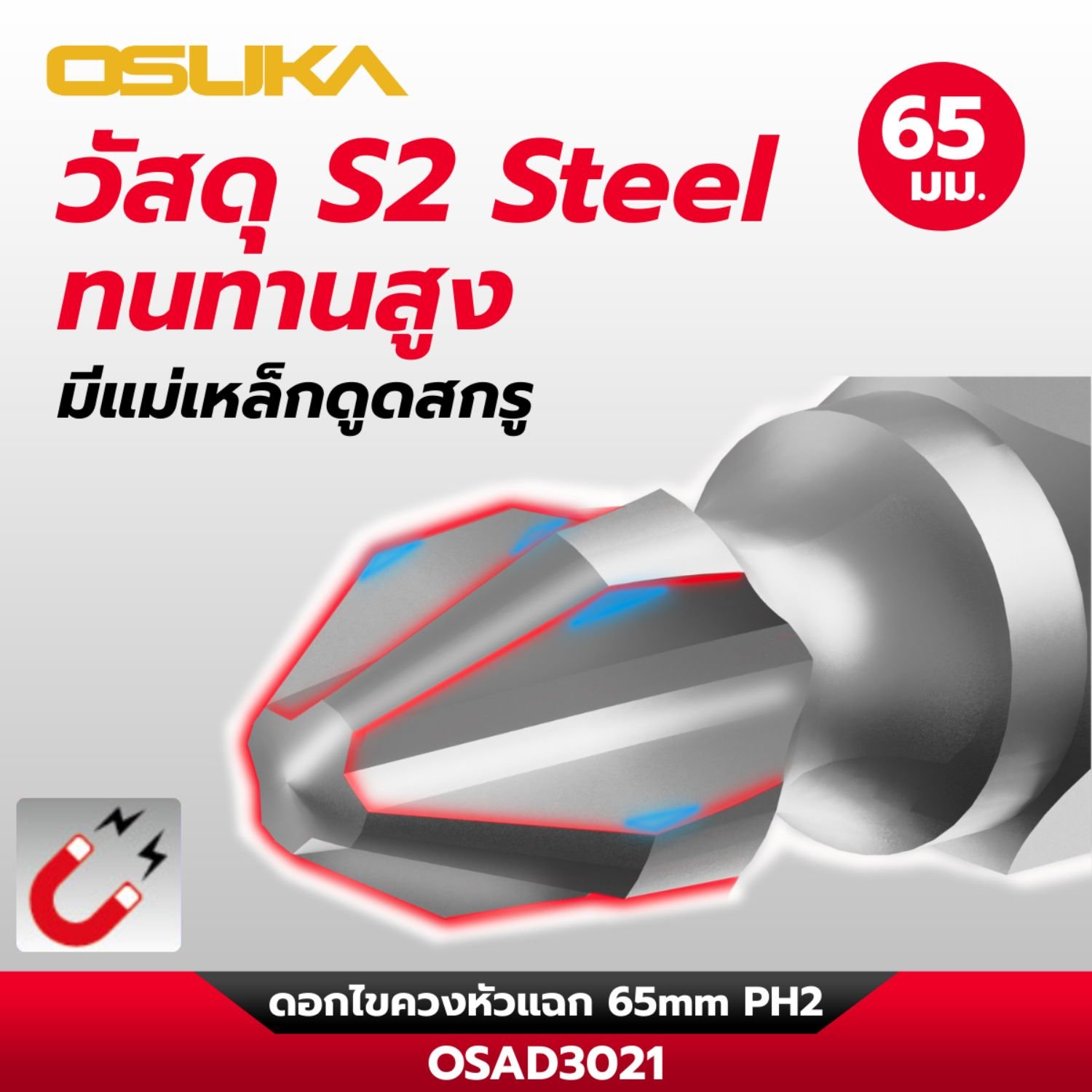 OSUKA ดอกไขควงหัวแฉก 65mm PH2 ก้านหกเหลี่ยม OSAD3021